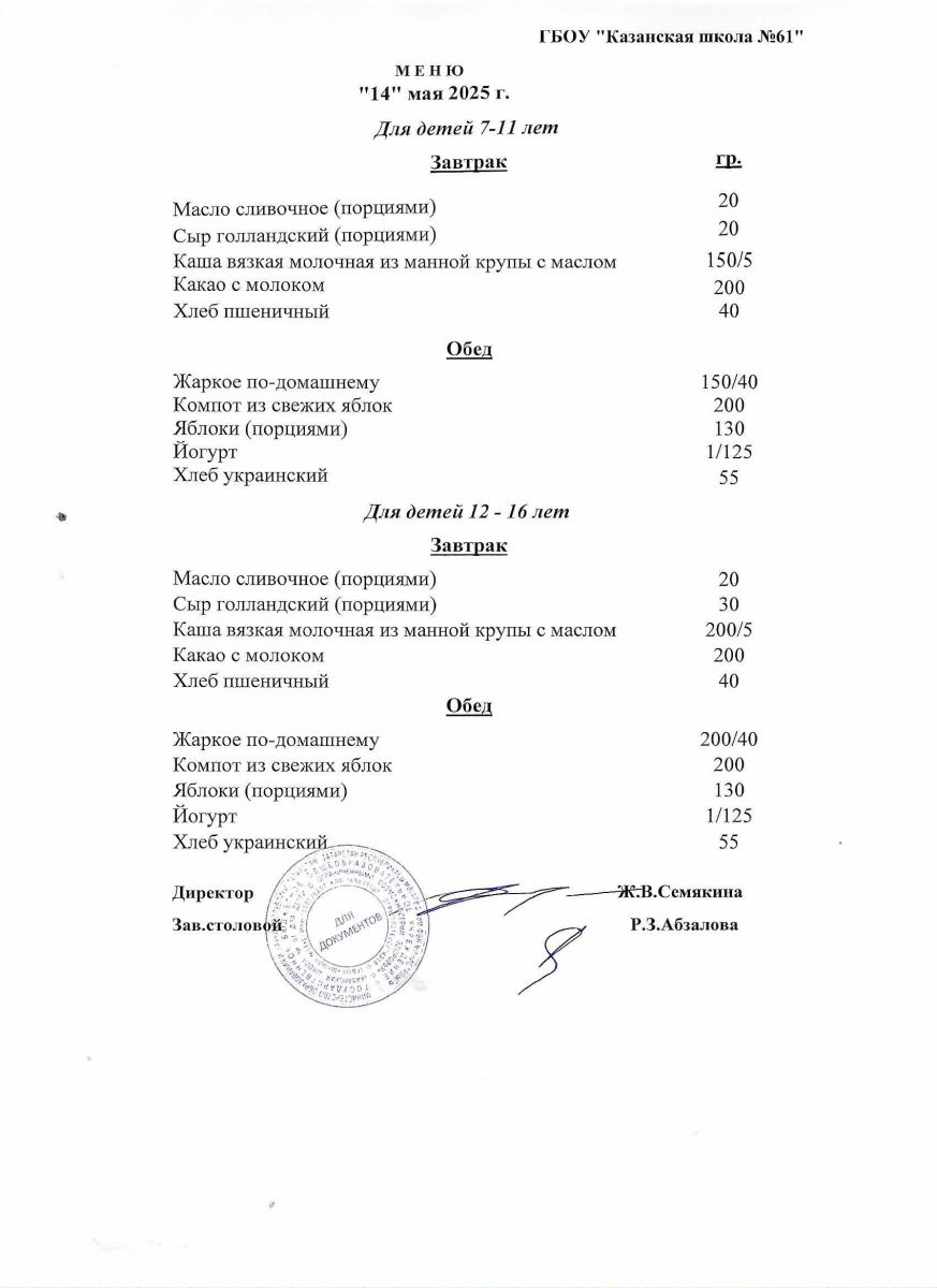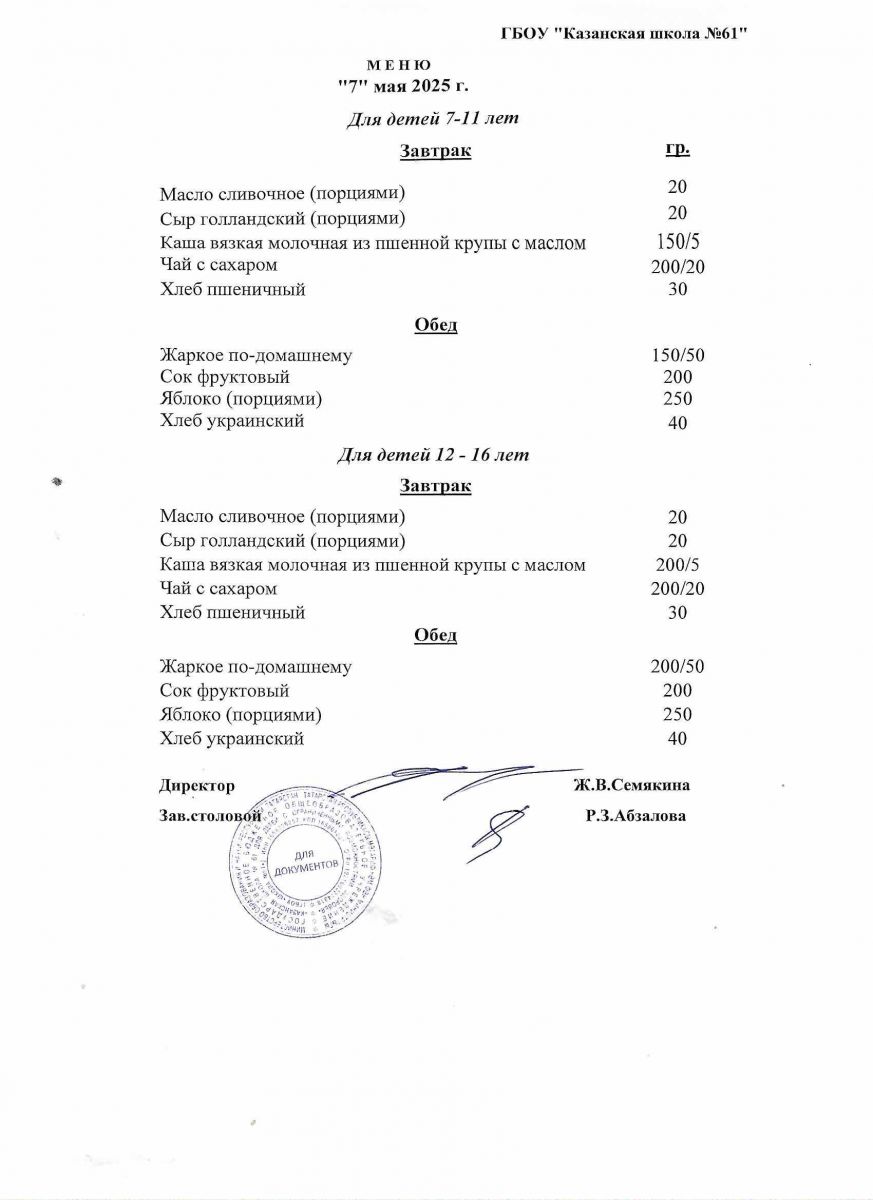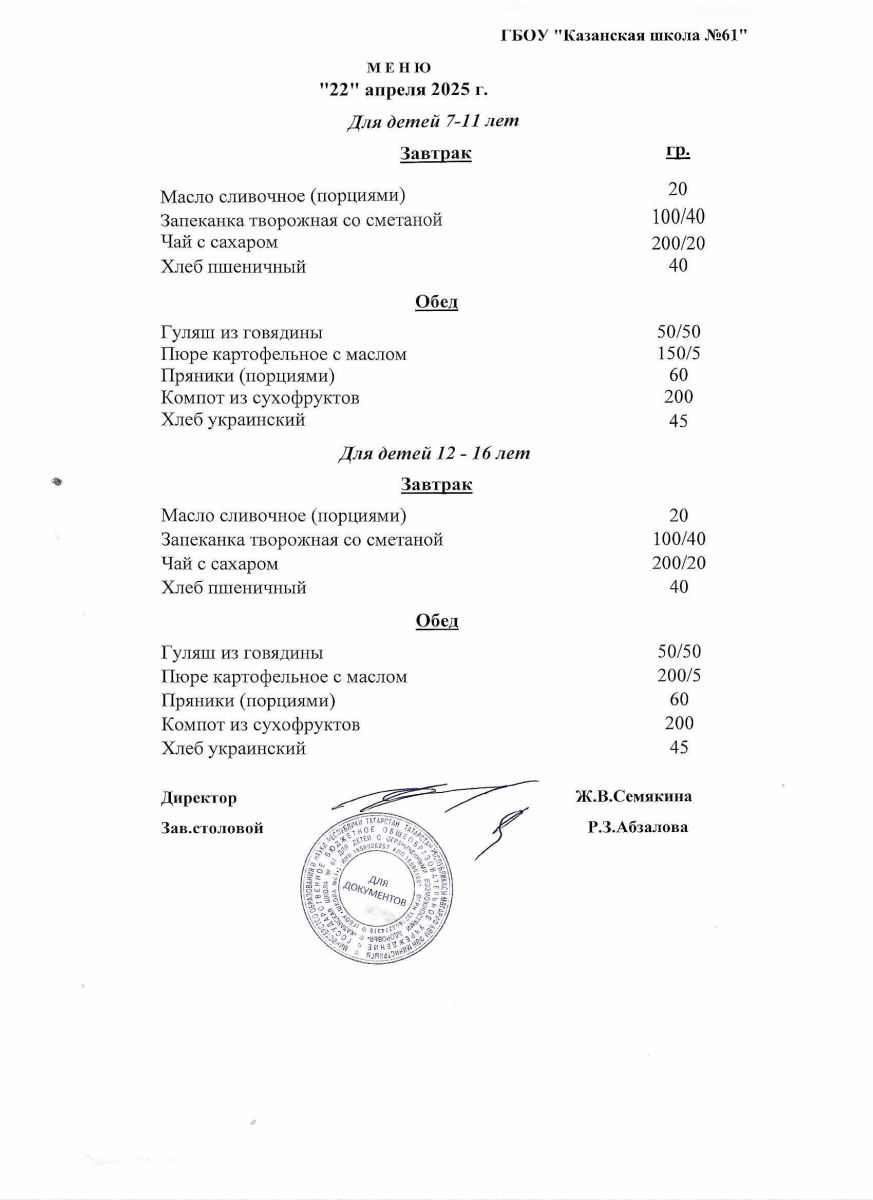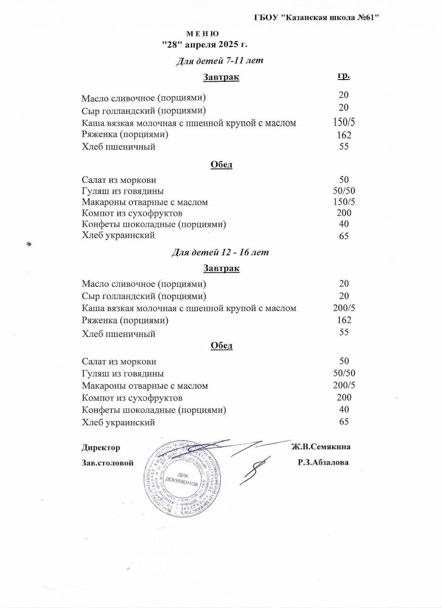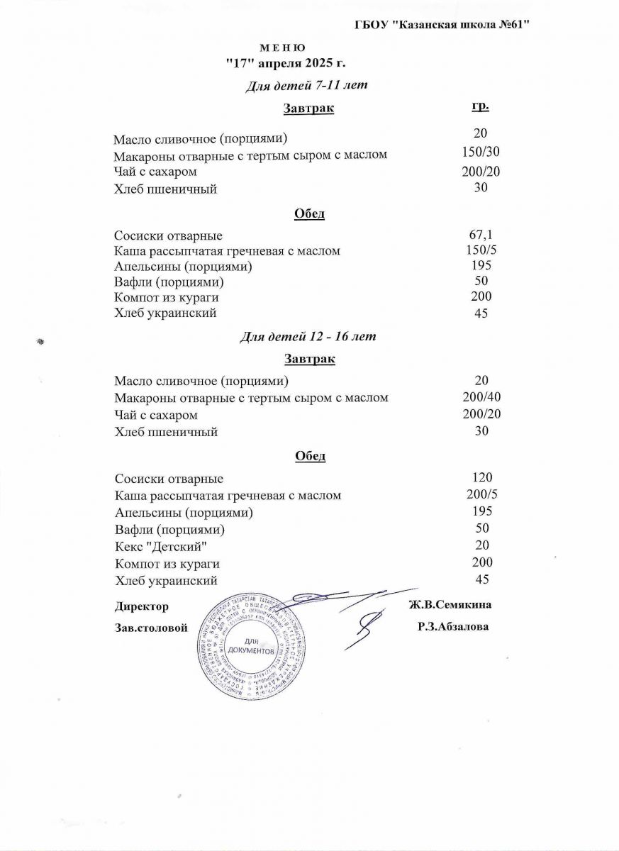 Меню на период с 31 марта по 2 апреля 2021 г.