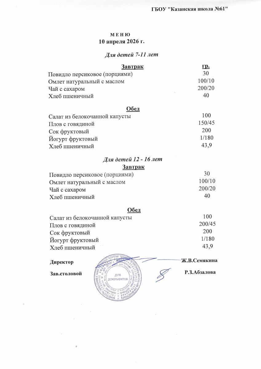 Меню на 10.04.2026