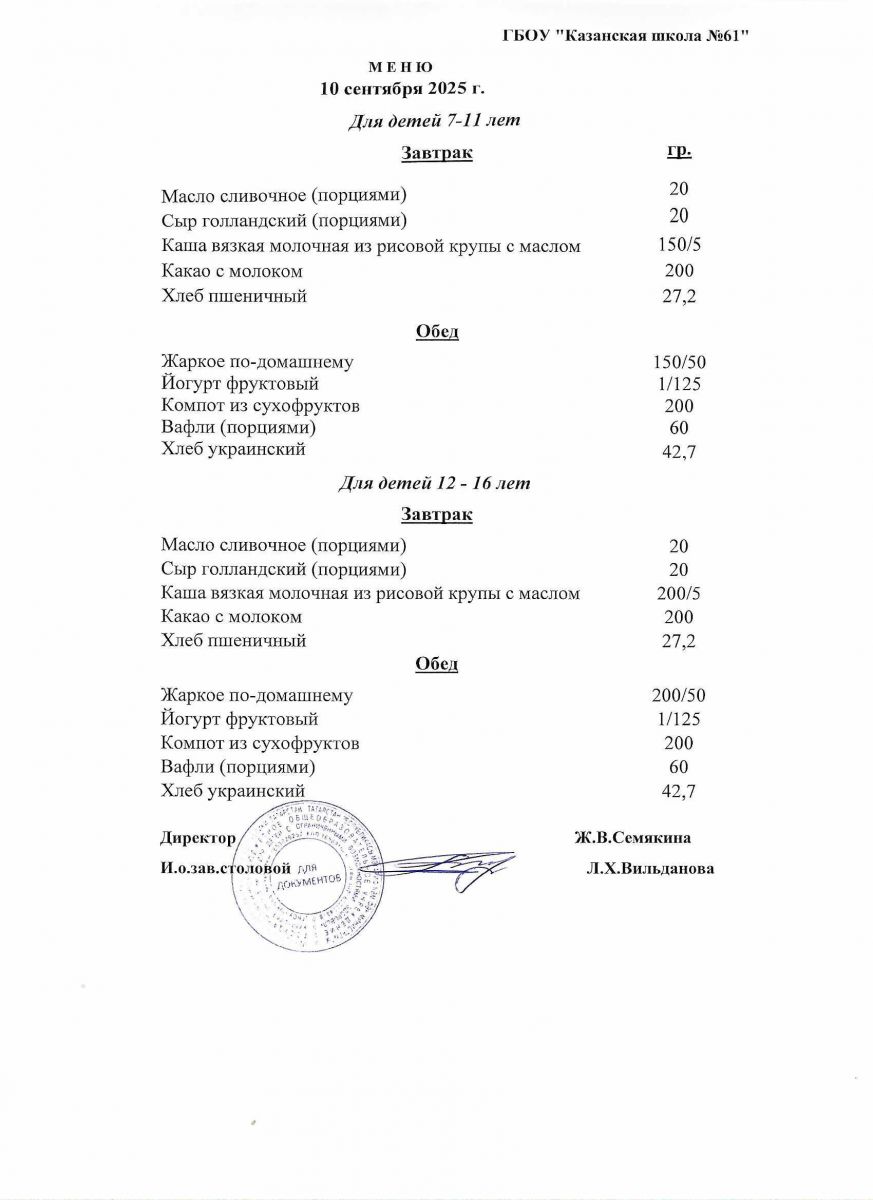 Меню на период с  30 сентября по 8 октября 2021 г.