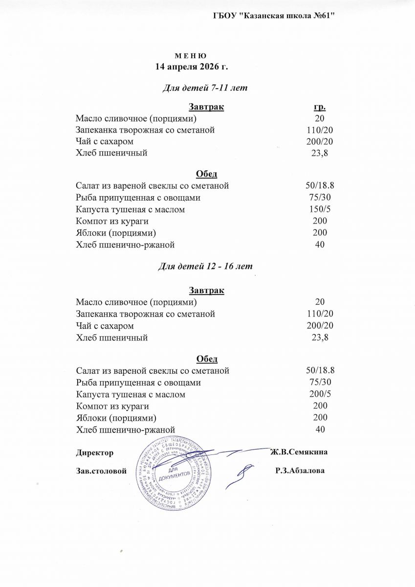 Меню на 14.04.2026