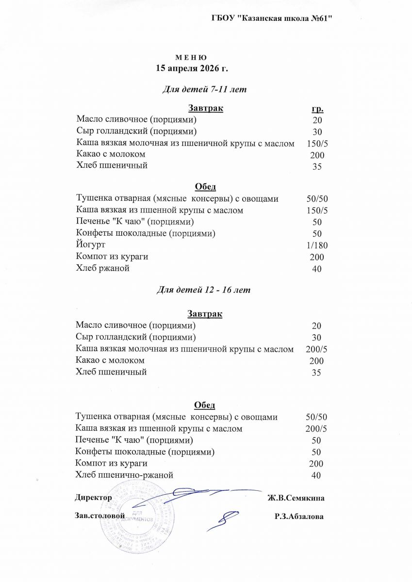 Меню на 15.04.2026
