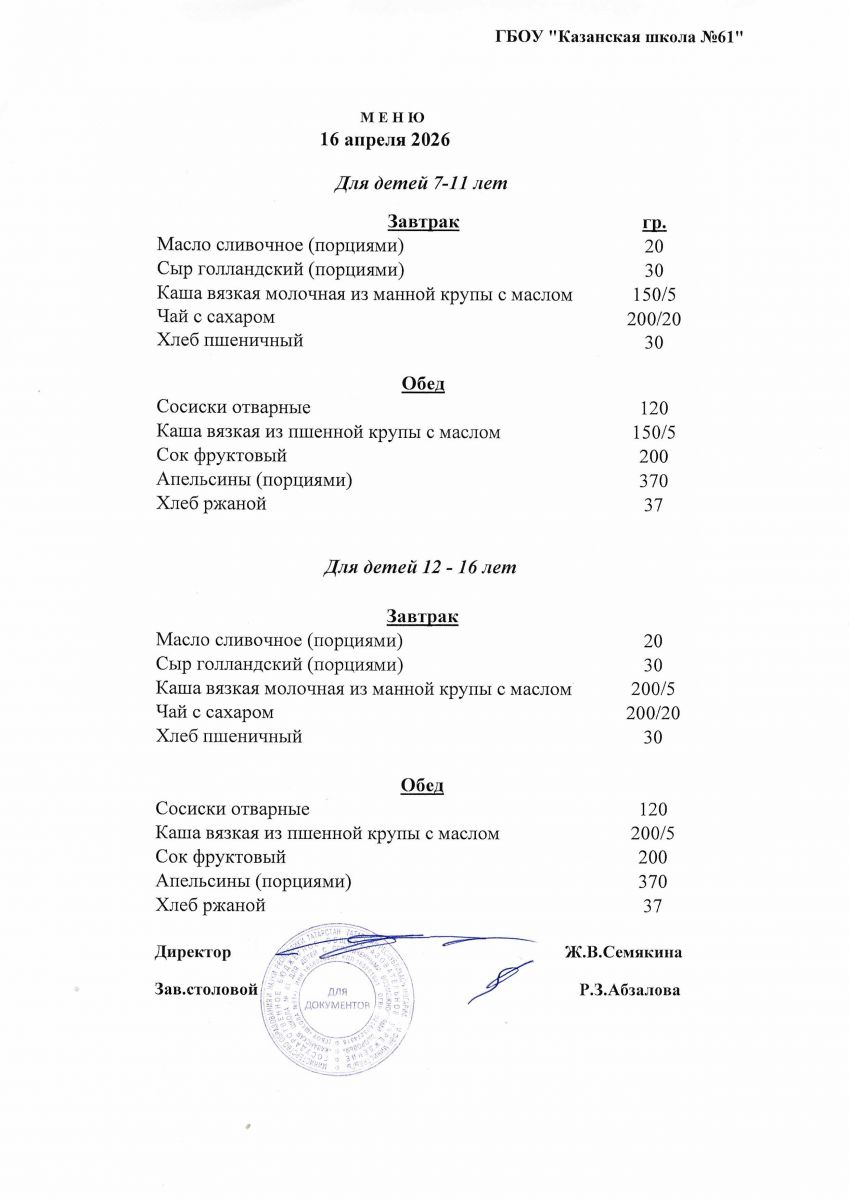 Меню на 16.04.2026