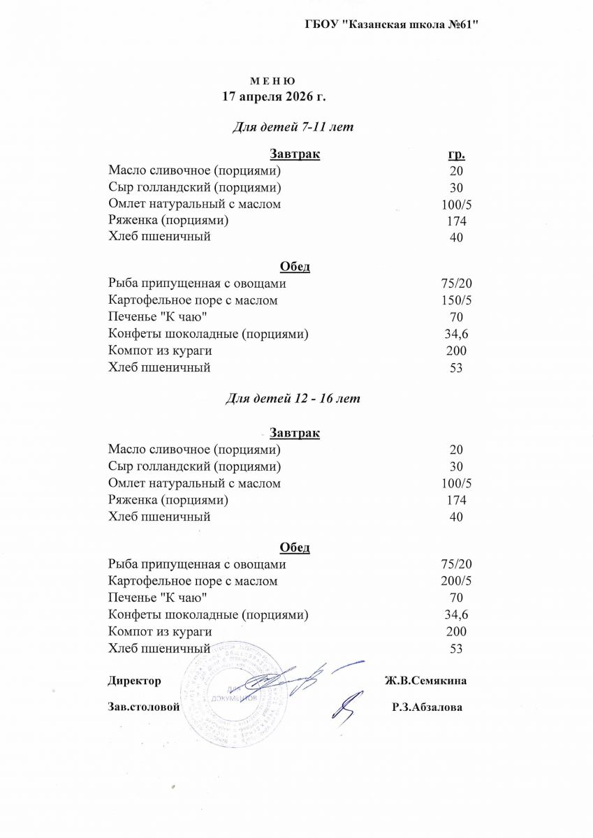 Меню на 17.04.2026