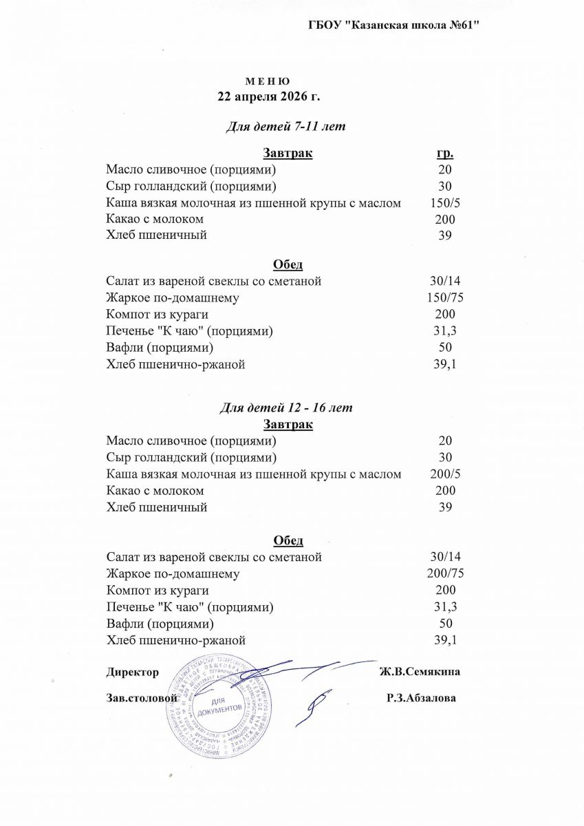 Меню на 22.04.2026