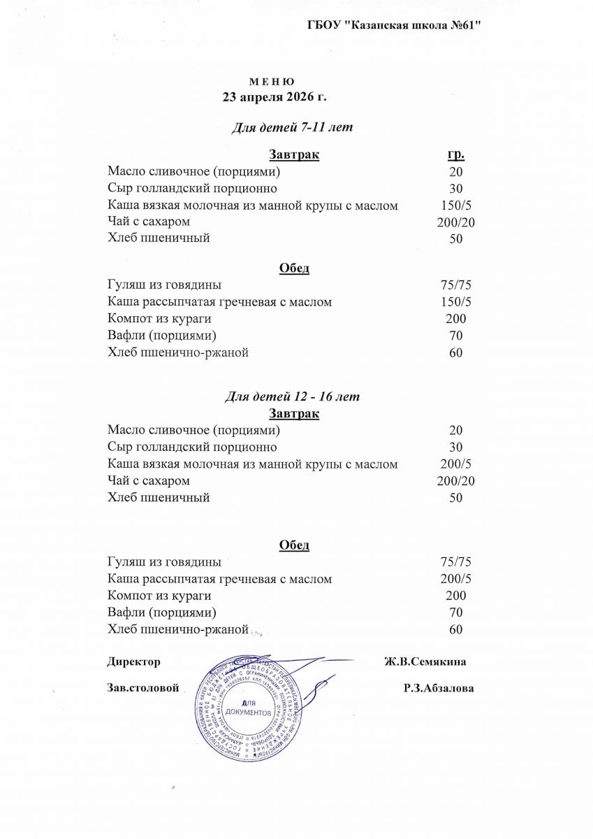 Меню на 23.04.2026