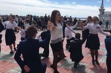 На площади 1 Мая сегодня, 9 мая, состоялся молодежный танцевальный флэшмоб «Вальс Победы»