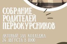 Уважаемые родители первокурсников, 24 августа в актовом зале нашего колледжа в 10:00 состоится родительское собрание с директором колледжа И.Г. Шамсутдиновым. После общего собрания состоится встреча родителей с кураторами групп. Присутствие обзательно.