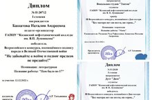 Педагог-организатор Башатова Н.А. стала лауреатом 1 степени Всероссийского конкурса, посвященного подвигу народа в Великой Отечественной войне "Не забывайте о войне и подвиг предков не предайте!" -