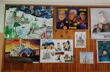 Выставка рисунков оформлена на 1 этаже около кабинета №19 и на втором этаже около библиотеки. -