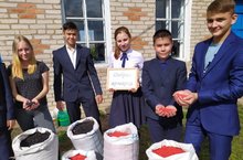 Мәктәп бакчасында көзге эшләр башланды. Бүген укучылар һәм укытучылар кишер алдылар.