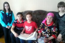 6 нчы класс укучылары класс җитәкчесе Хөсәенова Г.Ә. белән берлектә "Ветеранга бүләк" акциясе кысаларында хезмәт ветераны Әнүсә апаны якынлашып килүче Җиңү бәйрәме белән котлап, кечкенә генә концерт оештырып кайттылар. Әнүсә апа укучыларга үзенең тормыш юлы турында сөйләде; фотолары, истәлекле документлары, Мактау кәгазьләре белән таныштырды. Балалар үзләрен кызыксындырган сорауларын бирделәр. Очрашу истәлеге итеп, укучылар Әнүсә апаларына үз куллары белән ясаган котлау кәгазен калдырдылар.