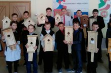 "Әтиләр советы" члены Шамс Илгизәр 6 класс укучыларына сыерчык оялары ясарга булышты.