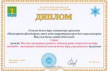 Гомуми белем бирү мәктәпләре арасында "Биналарның фасадларын, ишек алды территорияләрен һәм корылмаларын Яңа елга бизәү" район бәйгесендә мәктәбебез 1 урынны яулады һәм бүләкләнде.