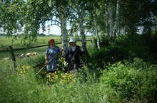 Бүген укытучылар мәктәп территориясендәге печәнне чаптылар.