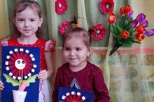Мәктәпкәчә яшьтәге балалар төркемендә тәрбияләнүчеләр бәйрәм уңаеннан, әниләренә бүләк ясады һәм видеокотлаулар җибәрделәр.
