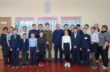 Хәрби патриотик айлык кысаларында үзенең Ватан алдында хәрби бурычын үтәп кайткан авылыбыз егете, мәктәбебез укучысы Вәлиев Айрат белән очрашу булды. Айрат укучыларны үзенең солдат тормышы белән таныштырды. Чарада мәктәп директорыбыз Илдар Мәгъфүрҗанович та үзенең хәрби хезмәттәге истәлекләре белән уртаклашты.Укучылар үзләрен кызыксындырган сорауларга җавап алдылар.