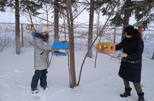 Во время зимних каникул учащиеся 5-6 классов изготовили кормушки для птиц и повесили их на территории школы. Руководитель Мубаракова Д.Ф.