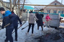 6-9 сыйныф укучылары ярдәмгә мохтаҗ Рәмилә апа Харисова ихатасын кардан арындырдылар.