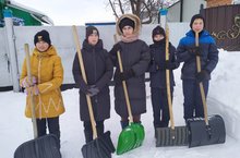 5, 8, 9 сыйныф укучылары ярдәмгә мохтаҗ Рәмилә апага шефлыкка барып, капка төбен, ишегалдын кардан арындырдылар. Җитәкче Фәррахова Р.Г.