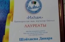 7 нче сыйныф укучысы Шәйхиева Динара "Илһам" Бөтенрәсәй яшь язучылар бәйгесе лауреаты. Котлыйбыз! Укытучысы - Садриева Г.М.