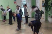 В школе до начала занятий проходят трехминутки-зарядки "В здоровом теле - здоровый дух"