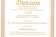 I место в республиканском конкурсе Парламентский урок 28.04.2017