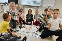 Робототехника тугәрәгенә йөри башлаган укучылар беренче роботларын җыеп бетереп, алырны сынап карадылар. 23.09.2022