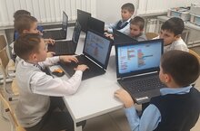 Робототехника түгәрәгендә укучылар Lego Mindstorms educations ev3...