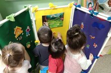 Воспитанники младшей группы участвовали в постановке сказки "Репка". В процессе театрализации ребята учились организовывать общение друг с другом, делали первые шаги в выражении своих эмоций, учились правильно понимать состояние своих героев.
