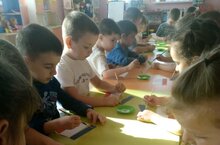 Уртанчы төркемдә "Өрәңге яфрагы"темасына эвэлэу (пластилинография) .Пластилинография, беренче чиратта, мускулларның киеренкелеген киметергә һәм йомшартырга ярдәм итә, балаларның хыялын, сәнгати һәм пространстволы фикерләвен үстерә, фантазияне уята, мәктәпкәчә яшьтәге балаларны мөстәкыйльлеккә ойрэтэ. -