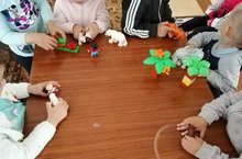 Детский сад "Карлыгач" Муслюмовского района, дети первой младшей группы с помощью цветных карточек самостоятельно собирали картинки.