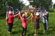 Мөслим авылы "Карлыгач" балалар бакчасы мәктәпкә әзерлек төркеме балалары гади обруч белән төрле хәрәкәтле, кызыклы уеннар уйнадылар. Алар инде обручны гимнастикада гына түгел, ә төрле уен алымнарында да кулланырга була икәнлеген күреп белделәр.
