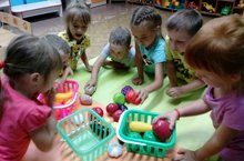 Мөслим "Карлыгач" балалар бакчасының икенче кечкенәләр төркеме. Балалар яшелчә һәм җиләк-җимешләрне төрле билгеләре буенча аерырга өйрәнделәр: кайда һәм ничек үсүен, төсен, формасын, тәмен ачыкладылар.