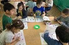 «Карлыгач» балалар бакчасы, мәктәпкә әзерлек төркеме. Балалар сүзләрдәге сузык авазларны табарга өйрәнәләр.