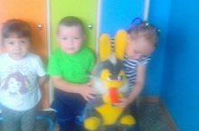 Дети первой младшей группы МБДОУ "Карлыгач" познокомили зайчика Пушистика с прохожей группы. Цель: познокомить детей с прихожей группы и с мебелью в нём.