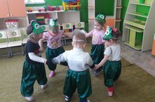 Беренче кечкенәләр төркемендә "Шаян бакалар" биюен өйрәнү. Максат: балаларны көйне тыңлап, хәрәкәтләрне көйгә туры китереп эшләргә өйрәтү.