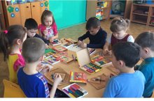 Дети подготовительной группы по УМК "Изучаем русский язык" проходят тему "Зима". В рамках этой темы сегодня у детей лепка из пластилина снеговика.