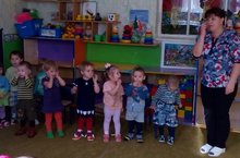 Беренче кеченәләр төркеме тәрбиячесе Мунасипова Р. Р. балалар белән сүзле - хәрәкәтле уеннар уйныйлар.