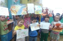Мәктәпкә хәзерлек төркемендә "Көзге вернисаж" рәсем конкурсы бара. Балаларның әти - әниләр белән берлектә ясаган рәсемнәре.