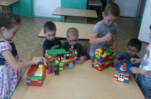 Мәктәпкә хәзерлек төркеме балалары Lego конструктор ярдәмендә төрле биналар төзиләр