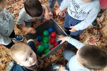 Икенче кече яшьтәге төркем балалары кечкенә туплар белән куңелле уеннар уйнады.