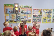 Икенче кечкенәләр төркеме балалары, бакчабыздагы махсус юл йөрү кагыйдәләрен өйрәнү бүлмәсендә, һәрдаим хәвеф-хәтерсез юлда йөрү кагыйдәләрен өйрәнәләр. Белгән белемнәрен ныгыталар. Юл йөрү кагыйдәләрен өйрәнү әти-әниләр белән тыгыз элемтәдә эшләүне күздә тота.