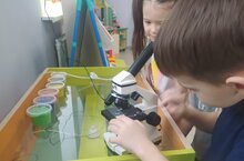 В подготовительной группе прошла беседа на тему: "Откуда в снеге грязь? ". Дети провели опыты со снегом, используя микроскоп.