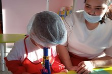 Мәзерлек төркемедә карның чиста булмавын һәм аны авызга кабарга ярамый икәнлеге турында әңгәмә булып узды. Һәм шулай ук балалар микроскоп аша карны күзәттеләр.