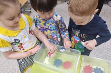 "Кызыклы ачышлар" проекты кысаларында беренче кечкенәләр төркеме балаларын кар һәм аның үзлекләре белән таныштыру.