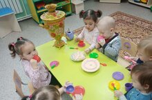 Туган телләр һәм халыклар бердәмлеге елы кысаларында беренче кечкенәләр төркемендә чәй табыны артында татар милли ризыклары белән сыйлану.