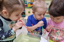 Икенче кечкенәләр төркеме балалары "Су һәм аның үзлекләрен өйрәнү" буенча кызыклы тикшеренү эшләрен дәвам итә. Балалар ел дәвамында сорауларына җавапны эзләнеп-табу юлы белән булдыра. Яңа белемнәрен махсус көндәлектә билгеләп баралар.