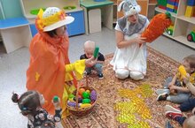 В МБДОУ "Карлыгач" к детям первой младшей группы в гости пришли Сюмбеля и Зайчик. Малыши показали свои способности.