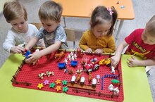 Икенче кечкенәләр төркеме балалары Lego-төзү конструкцияләре белән шөгыльләнүнең катлаулырак баскычына менде. Хәзер алар конструкцияләр белән сюжетлы корылмалар төзи, аларны аңлата белә.