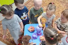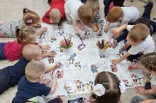 Дети второй младшей группы совмещают работу над закреплением цвета с развитием навыков владения пером. Малыши обучаются мерам предосторожности, секретам дружеской игры при выполнении коллективной работы.